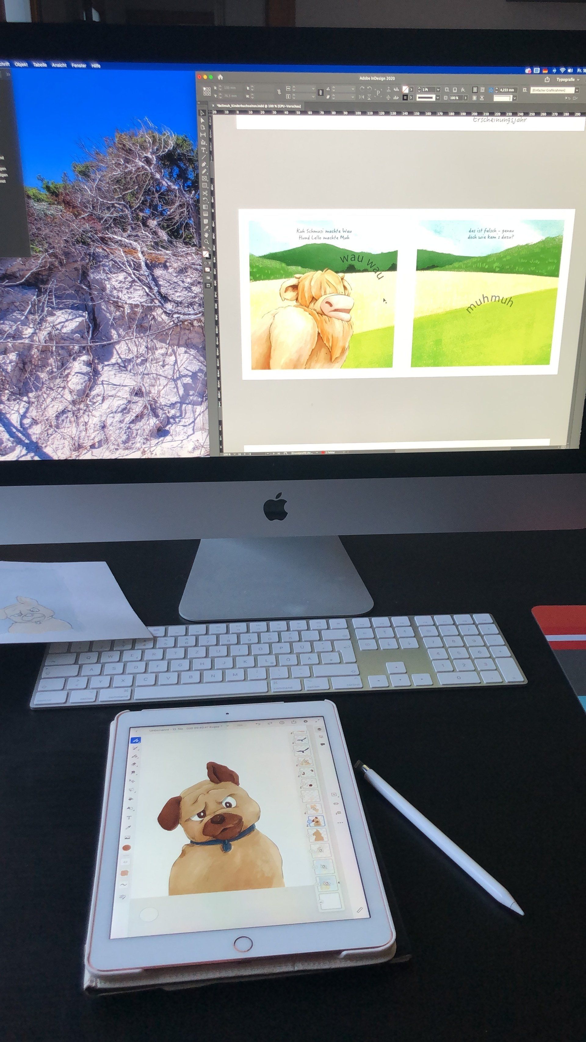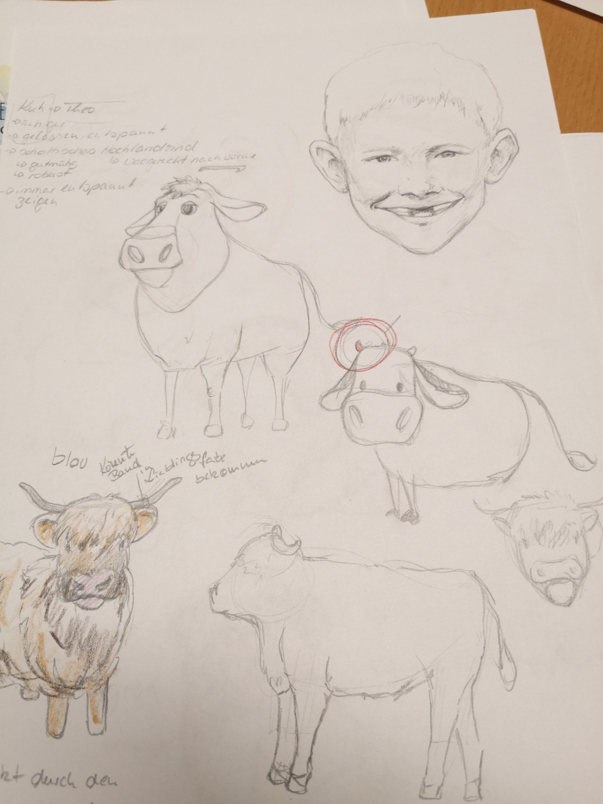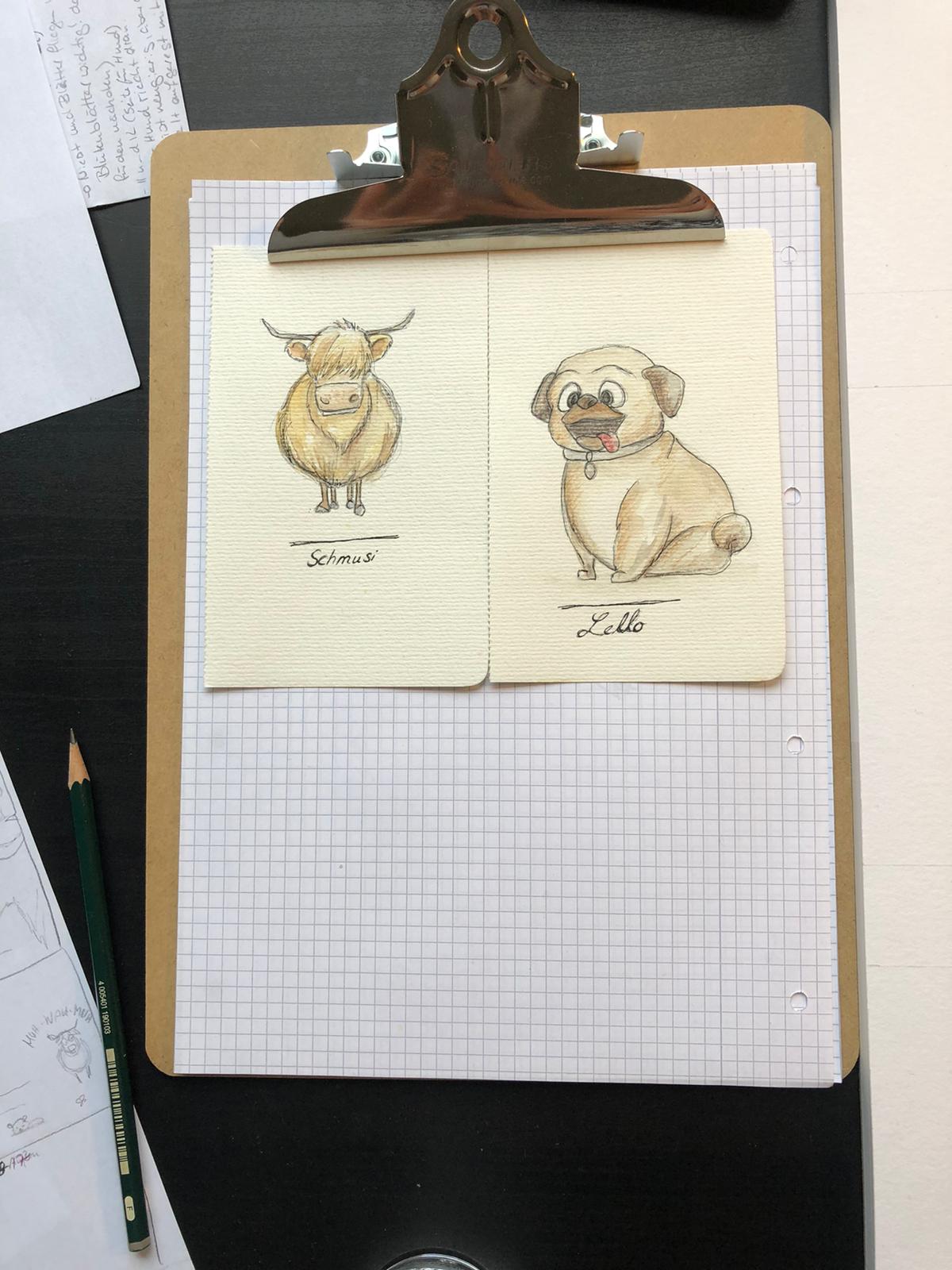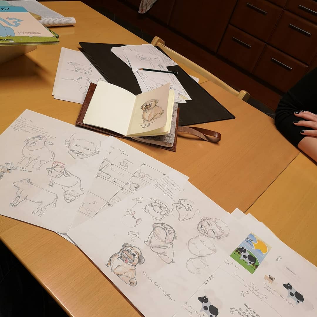 Sie hat nicht einfach nur einen Hund und eine Kuh gezeichnet. Sie hat sie zum Leben erweckt und die Charaktere meine Söhne genau unter die Lupe genommen. Denn meine Jungs spiegeln sich in ihren Lieblingstieren wider. Ein quirliger Hund und eine in sich ruhende Kuh. Steffi hat sich Fotos und Videos meiner Kids angesehen und sie live erlebt. Es war einfach magisch. Alle Anfangszeichnungen habe ich aufbewahrt. Ich bin einfach beeindruckt, was sie gezaubert hat. Von ihr stammt auch die Idee mit dem Marienkäfer in der Geschichte. Schaut mal genau hin. Sie hat viele kleine Überraschungen in ihren Illustrationen für die Kleinen und Großen versteckt.